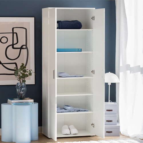Dulap cu Rafturi KLARA, Alb, 70 cm, 2 uși