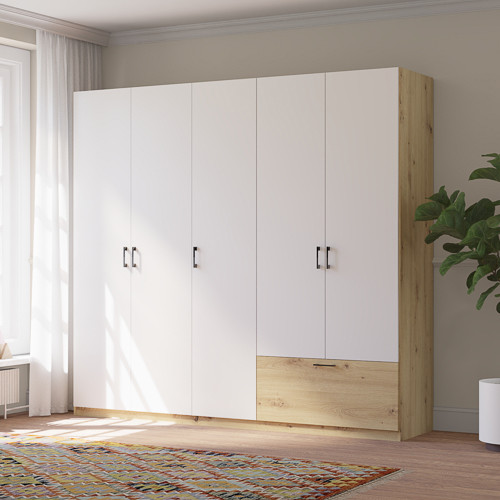 Dulap pentru haine stejar/alb mat, 225 cm. ALTA