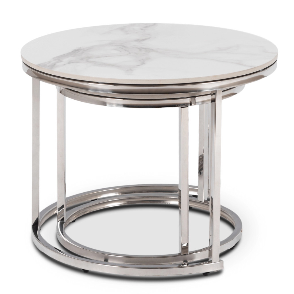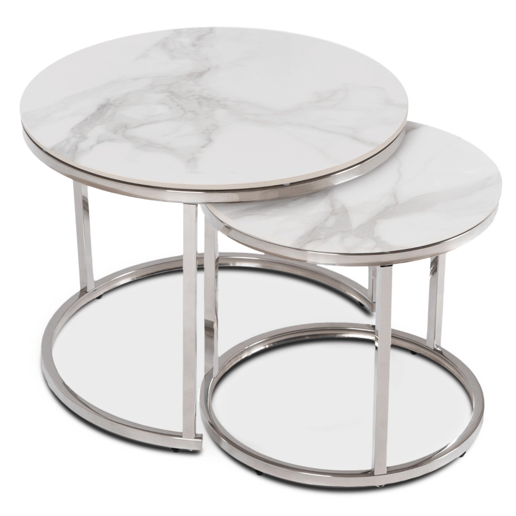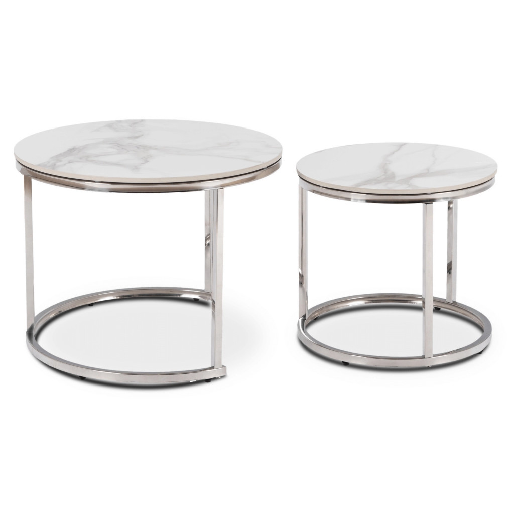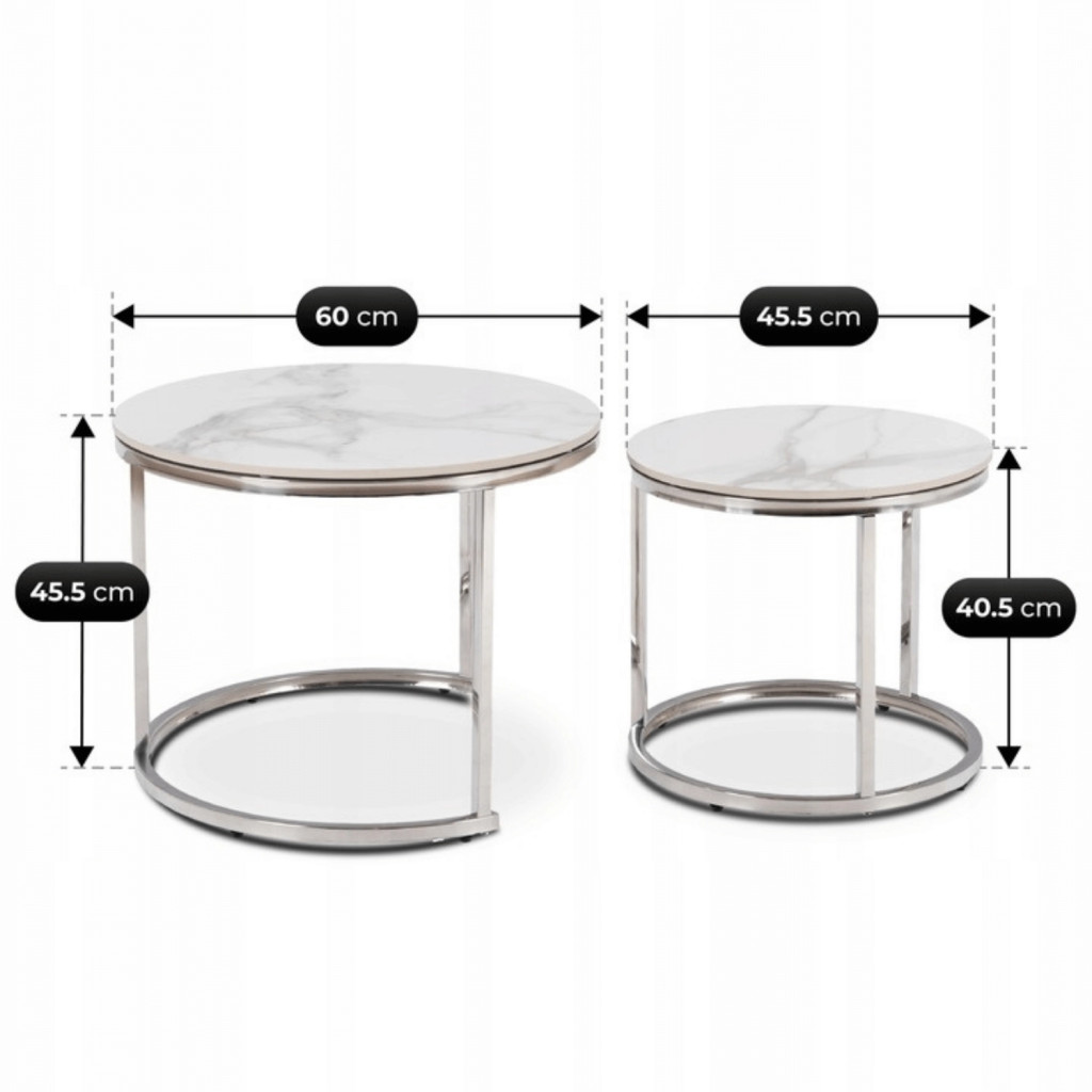 Set măsuțe de cafea ceramice alb marmură/argintiu AMARA