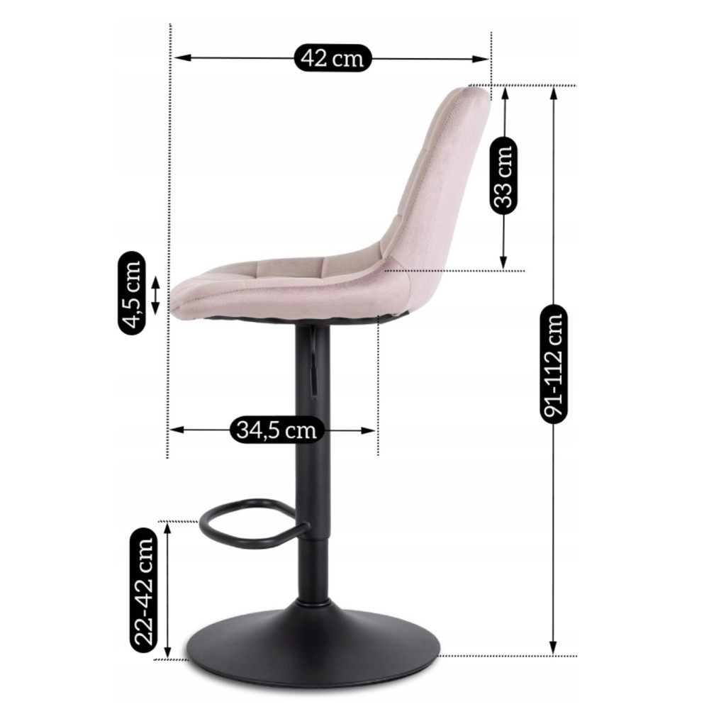 Scaun de bar catifea roz ARCOS