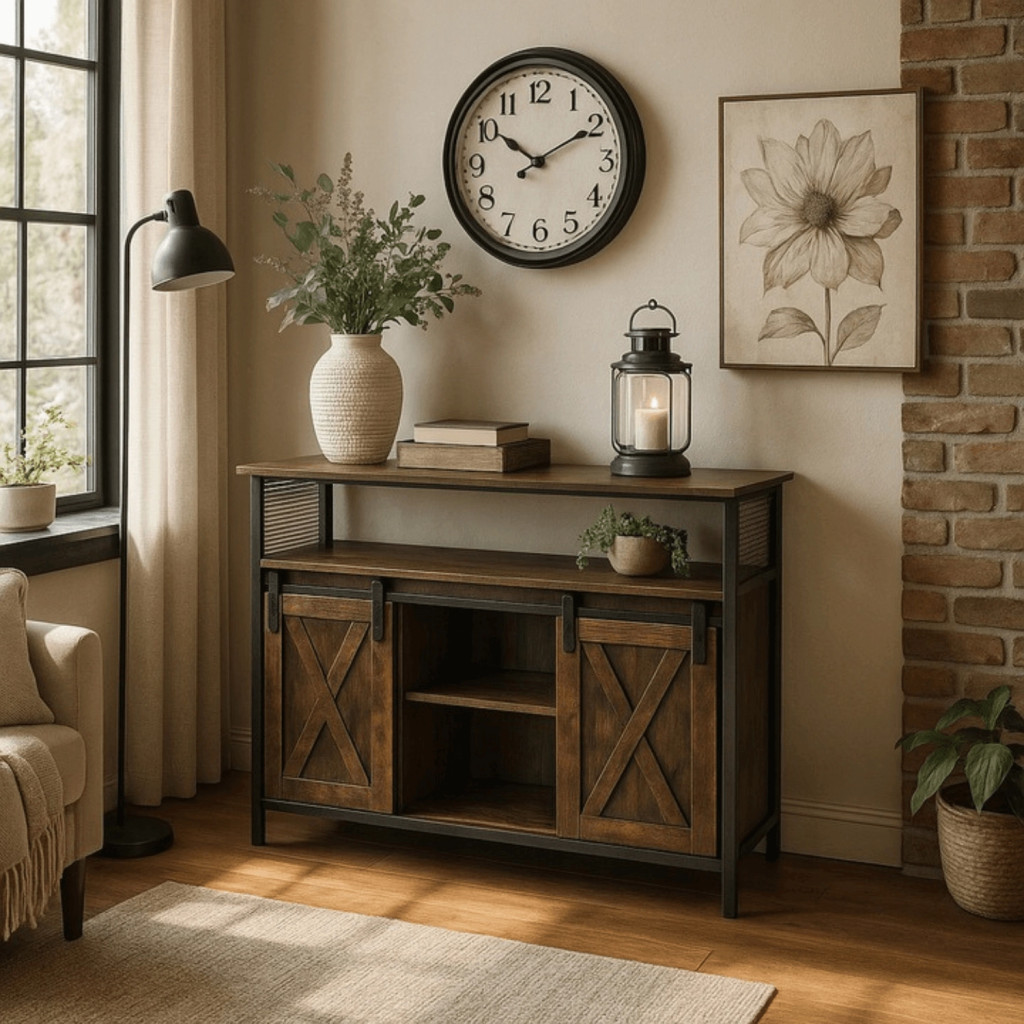 Comodă cu polițe 100 cm, finisaj stejar rustic/negru ARLO