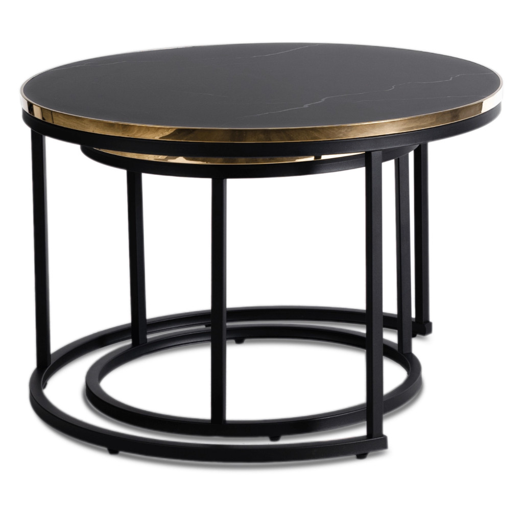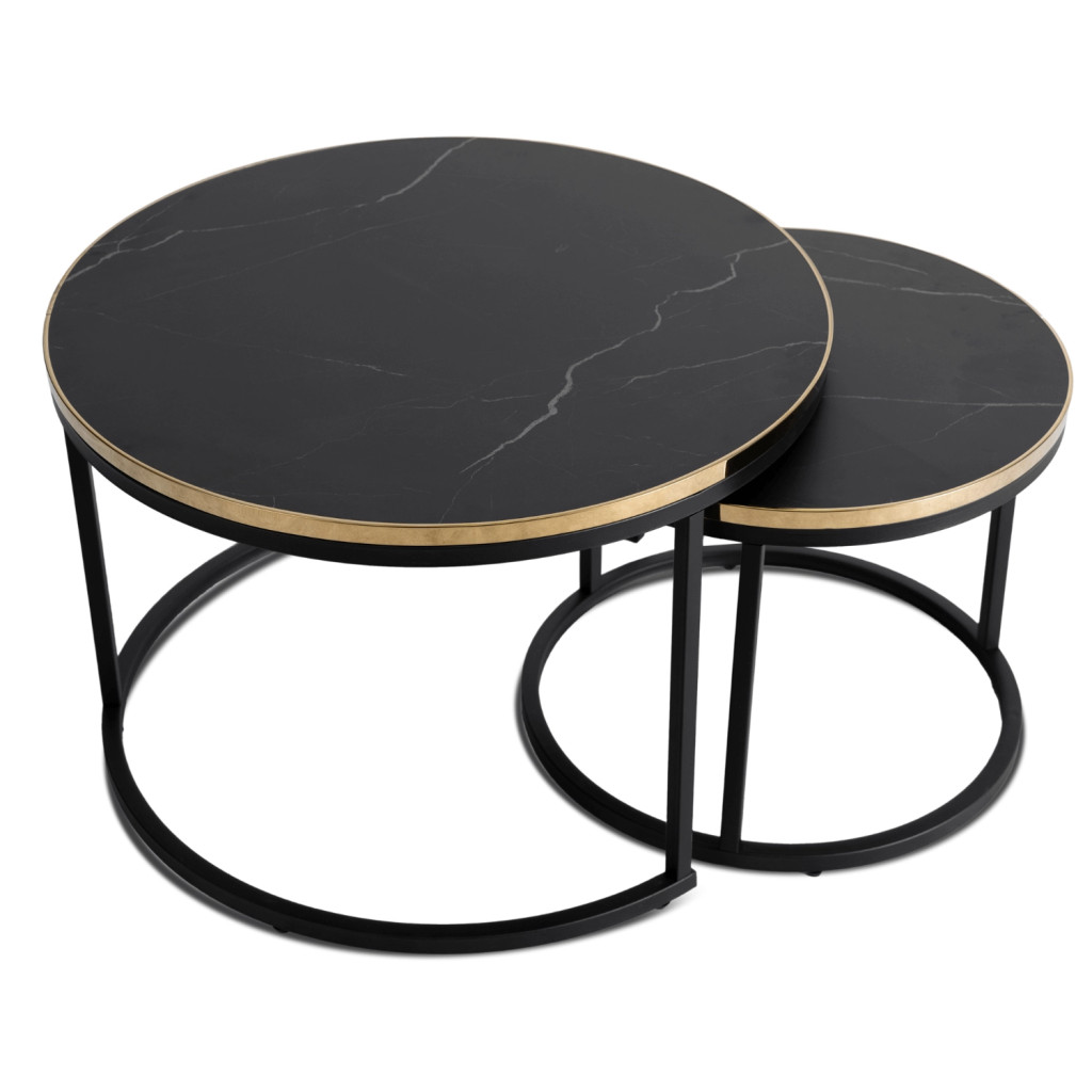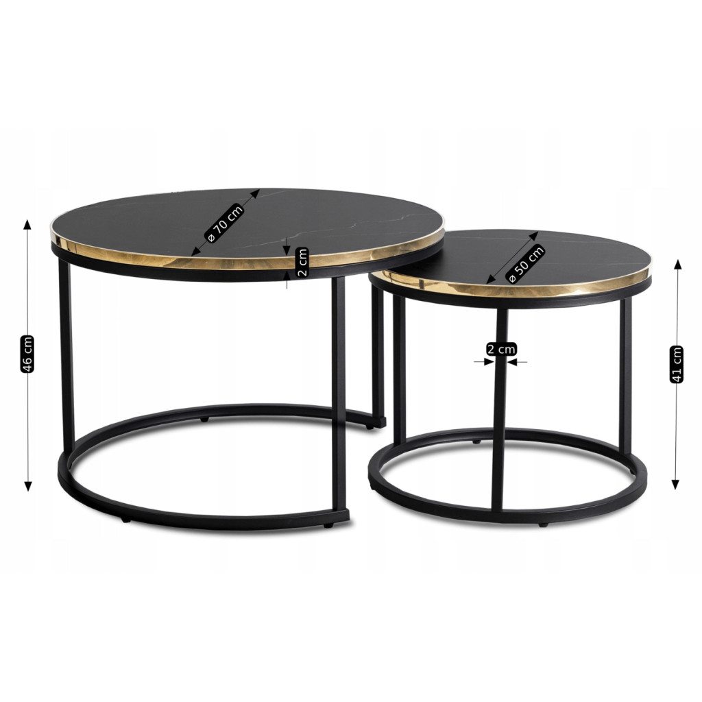 Set măsuțe de cafea culoare marmură neagră/auriu ARON