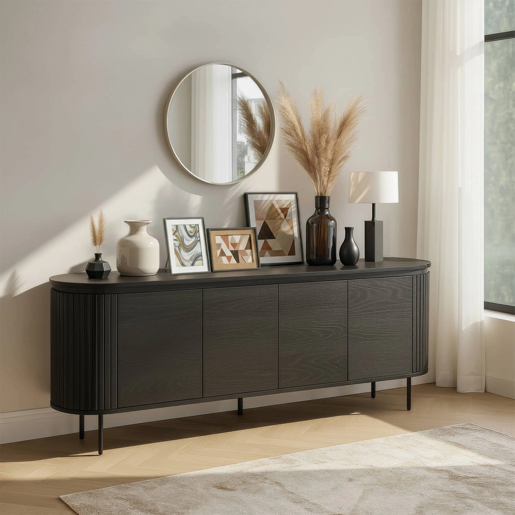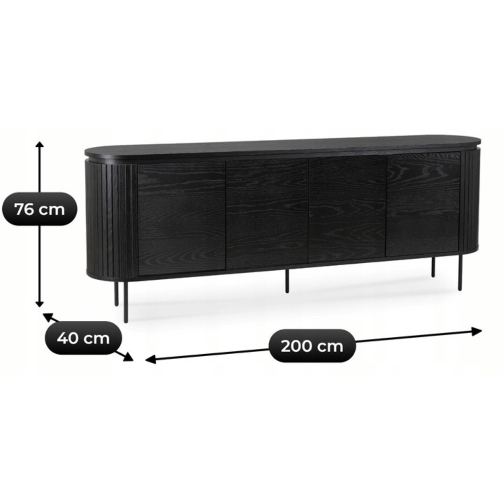 Comodă 200 cm, patru uși, culoare negru BECK
