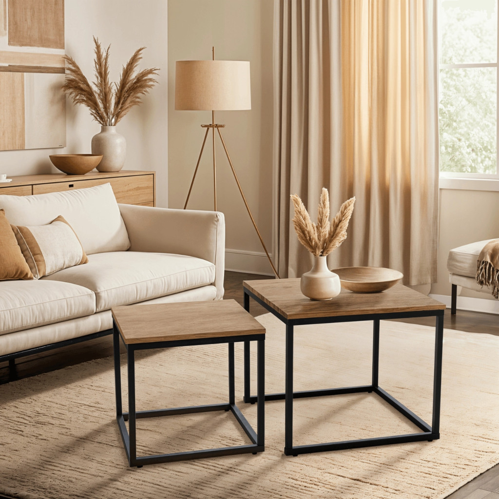 Set măsuțe de cafea culoare stejar auriu/negru CARMI