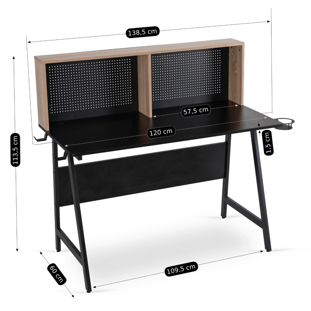 Birou gaming 138,5 cm, culoare negru/stejar sonoma ICE