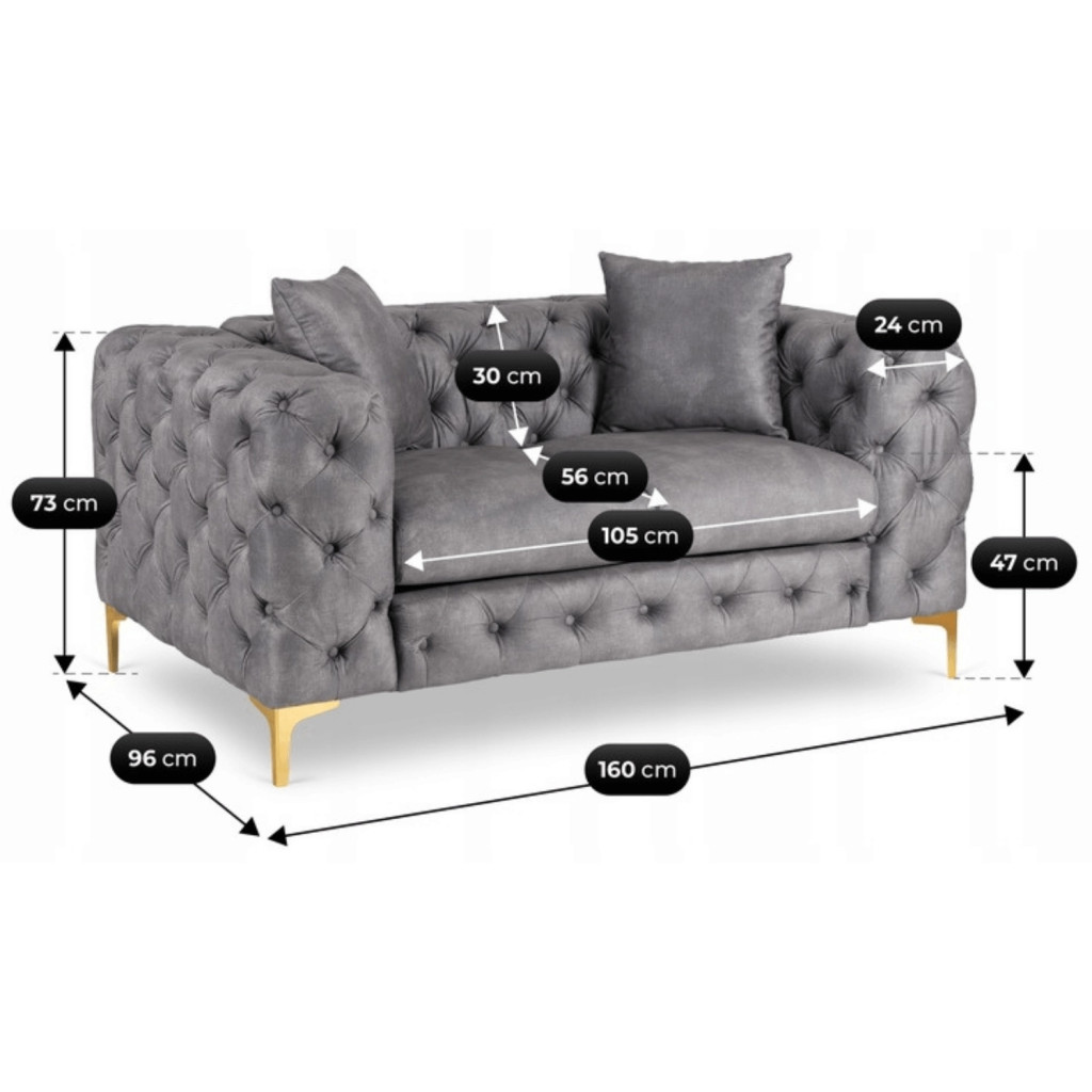Canapea 2 locuri gri, tapițată cu catifea SORRENTO 2S