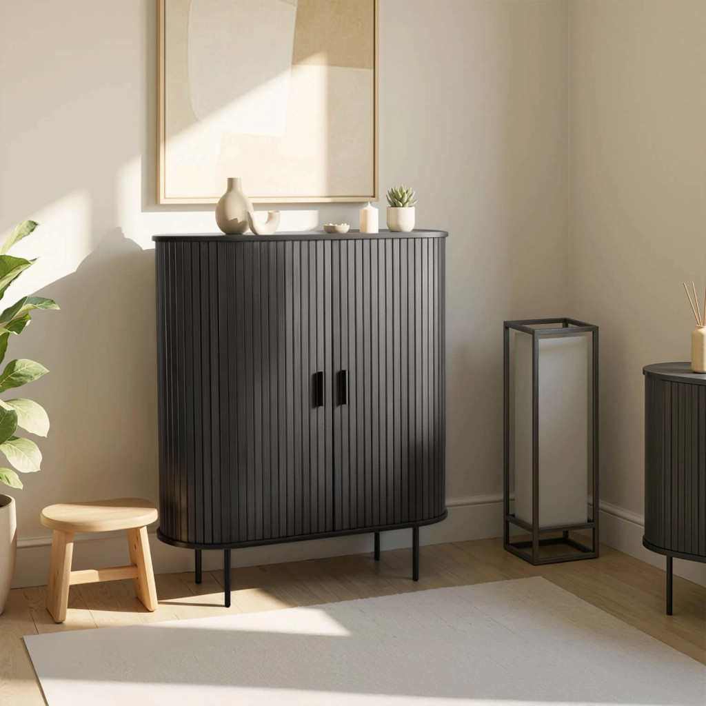 Comodă 100 cm, două uși glisante, culoare negru TRISH