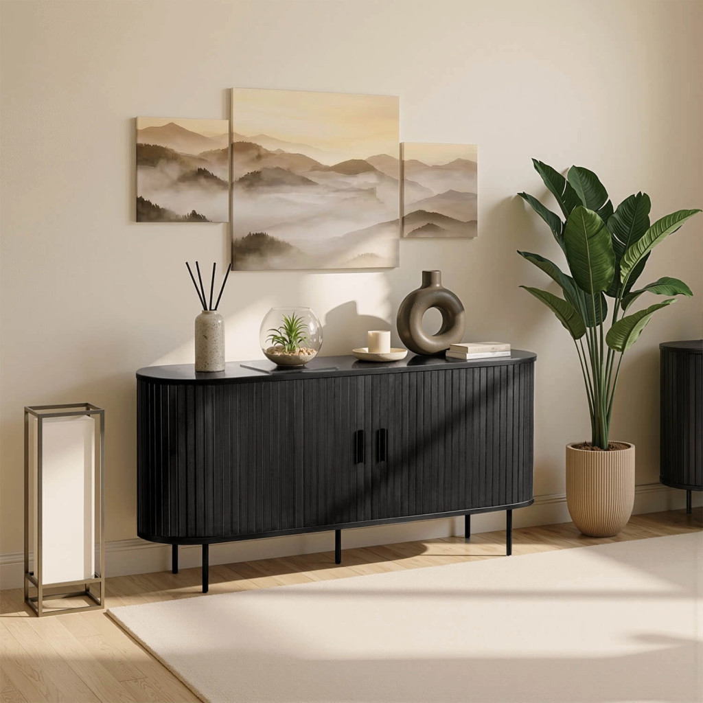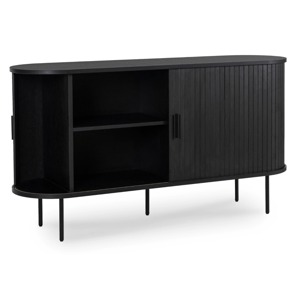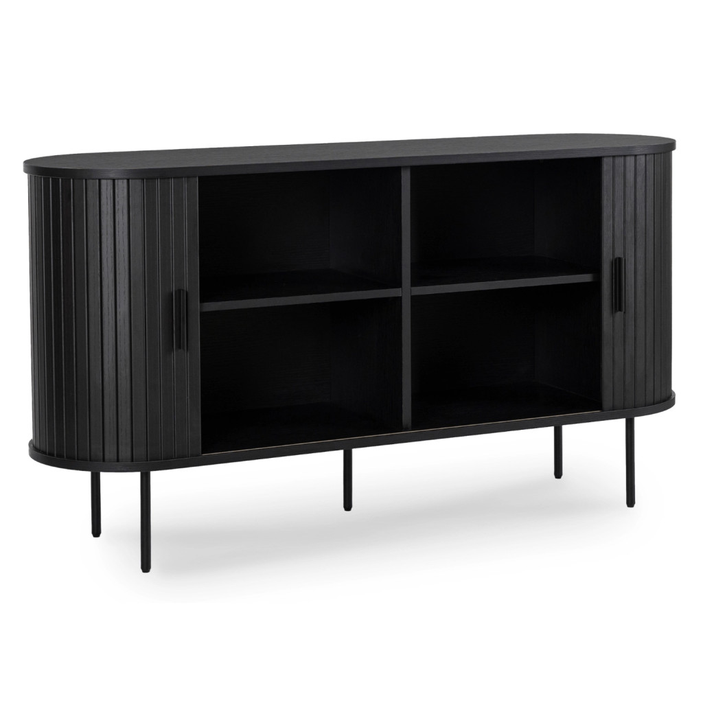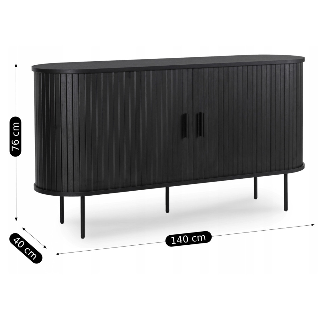 Comodă 140 cm, două uși glisante, culoare negru TRISH
