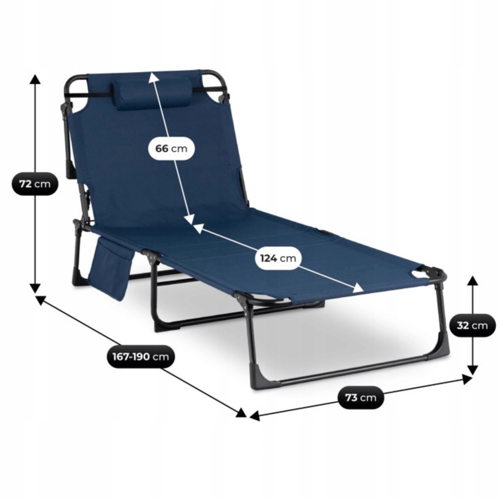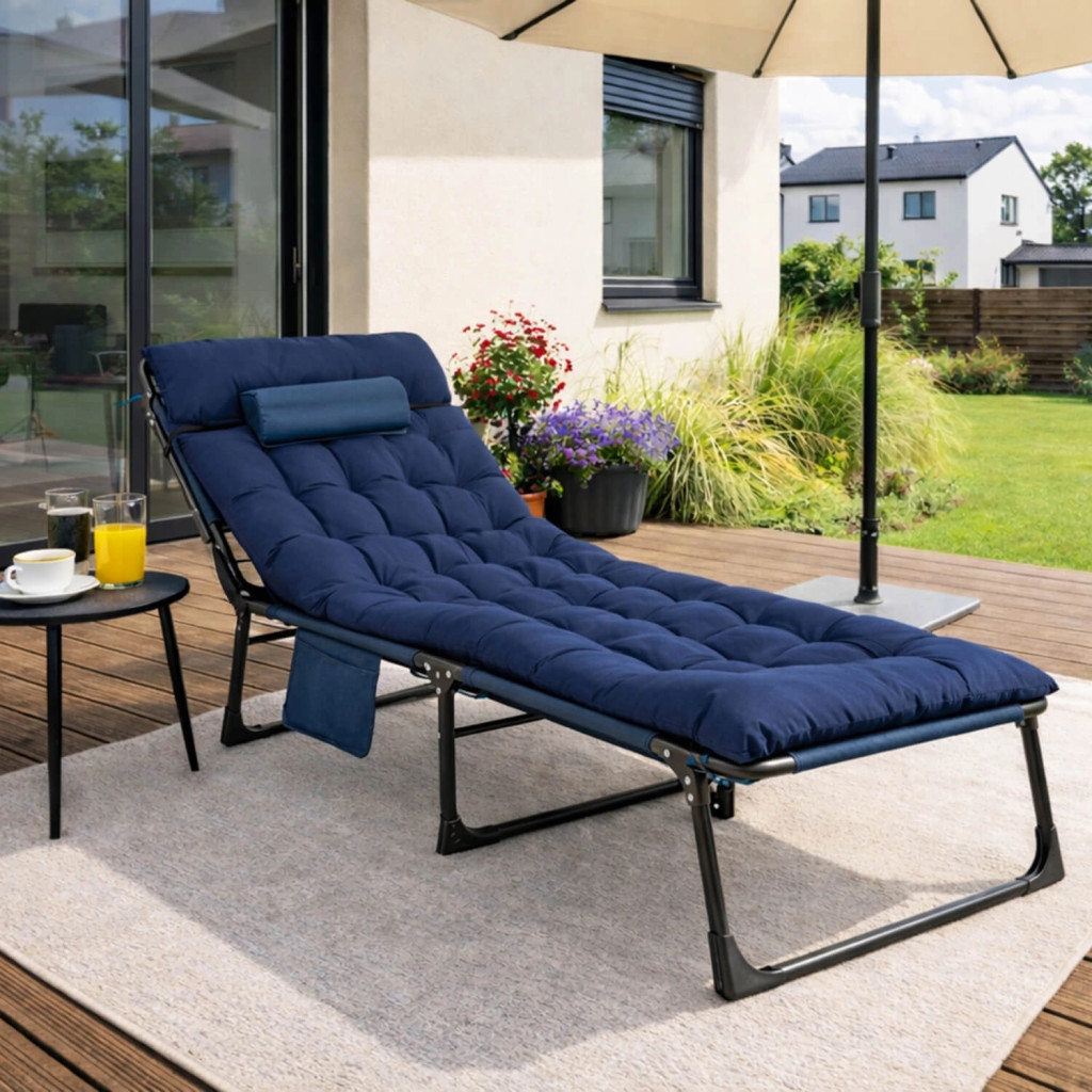 Șezlong de grădină / pat de camping albastru închis – VENUS
