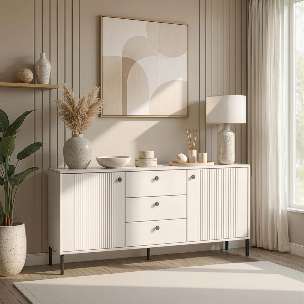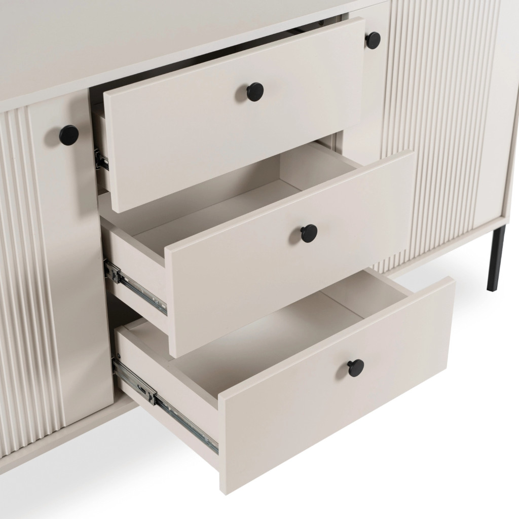 Comodă SOFT 154 cm, cașmir, canelată, două uși, cu sertare