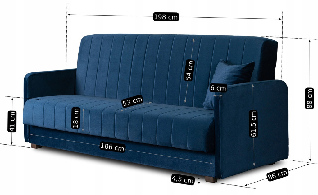Canapea rabatabilă culoare albastru închis, tapițerie catifea PORTO
