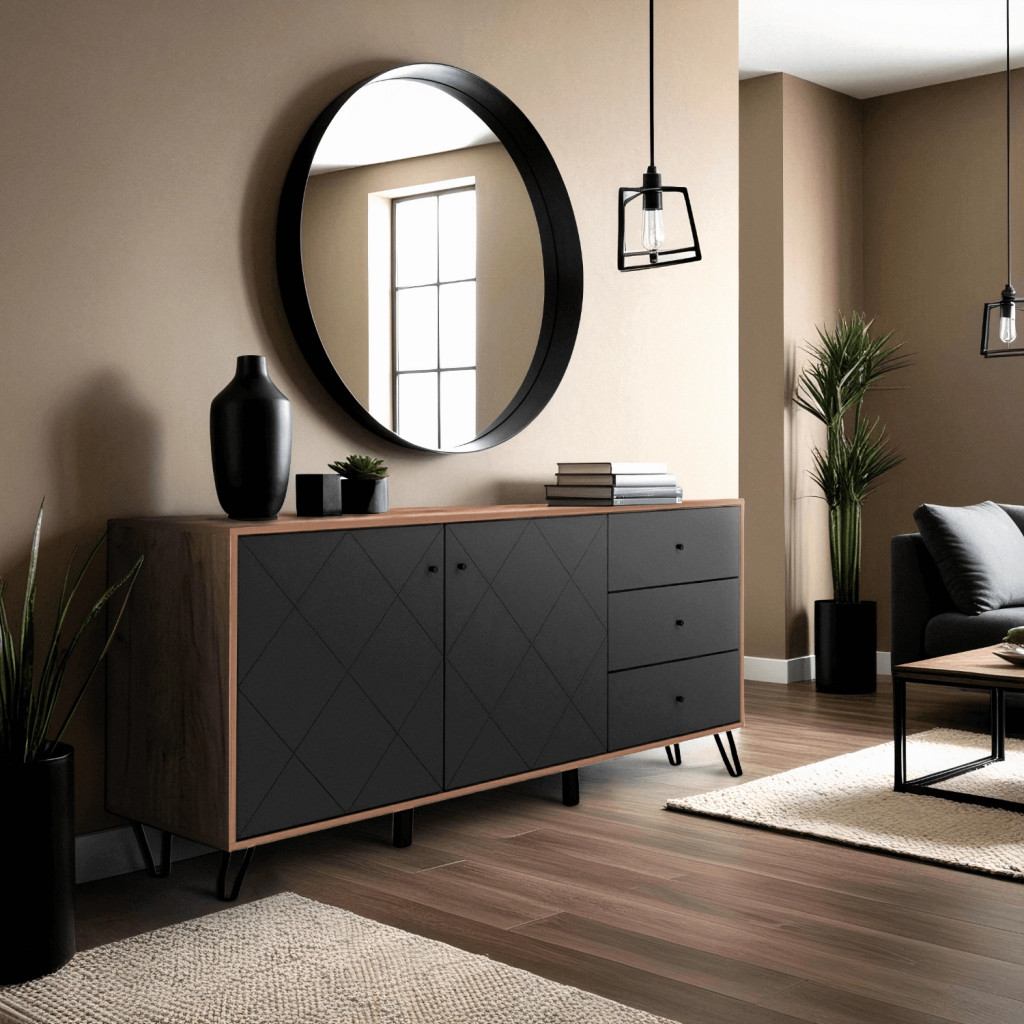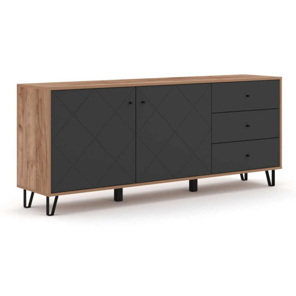 Comodă BACARDI 183 cm stejar craft tobacco și grafit