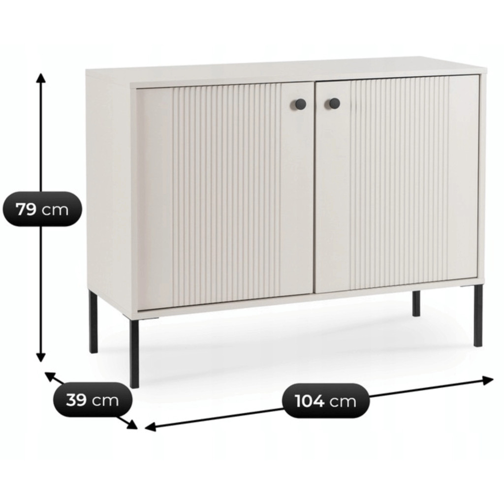 Comodă 104 cm, două uși, fronturi riflate, culoare cașmir SOFT