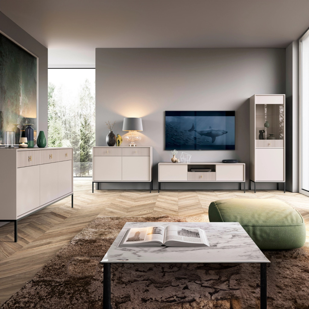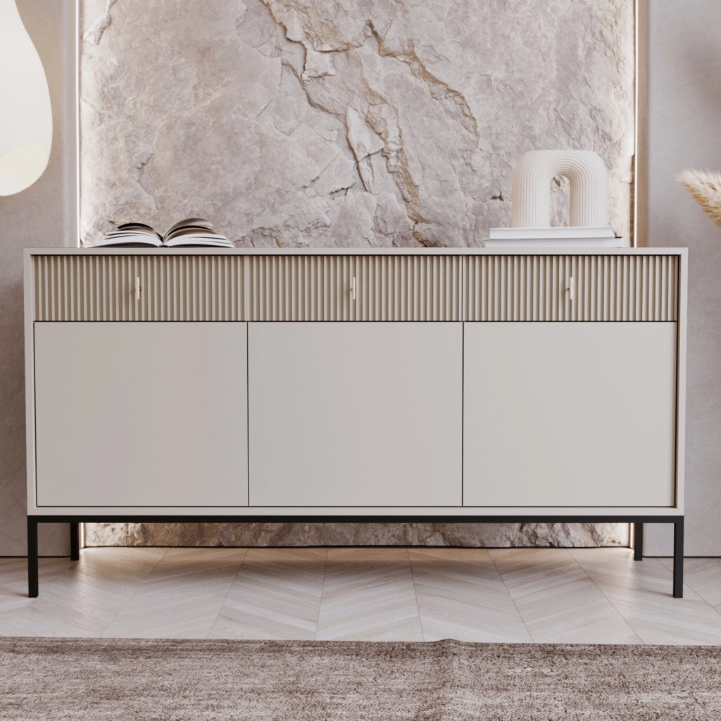 Comodă 154 cm cu front striat culoare cașmir – MARCOS