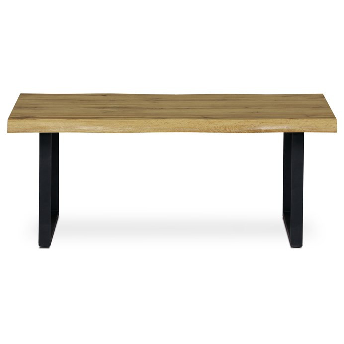 Măsuță de cafea culoare stejar, cu picioare din metal negru. Dimensiuni: 110×70×45 cm.