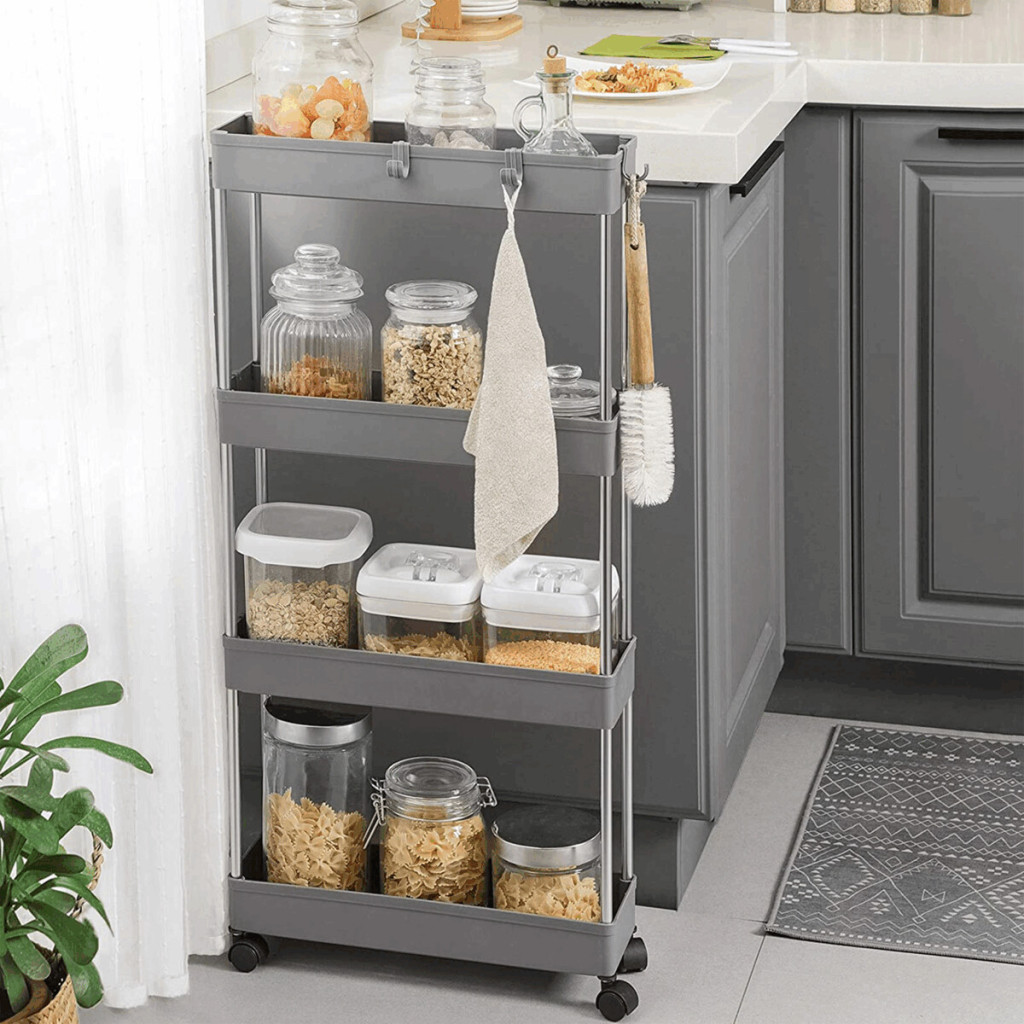 Cărucior depozitare cu roți, plastic, gri, APV-E1008 GREY
