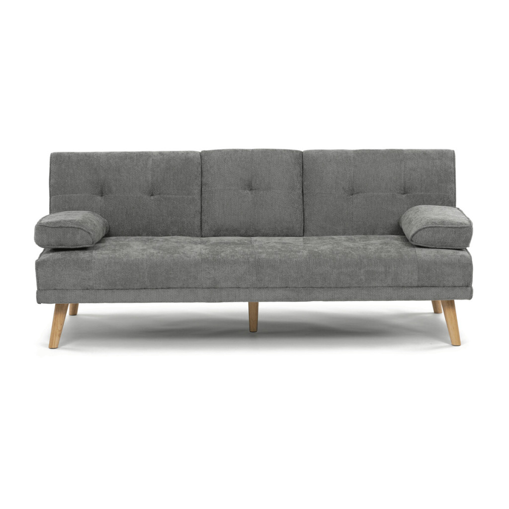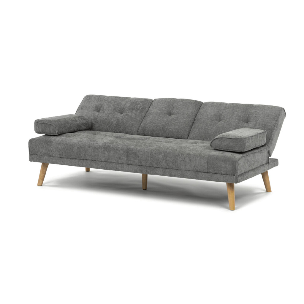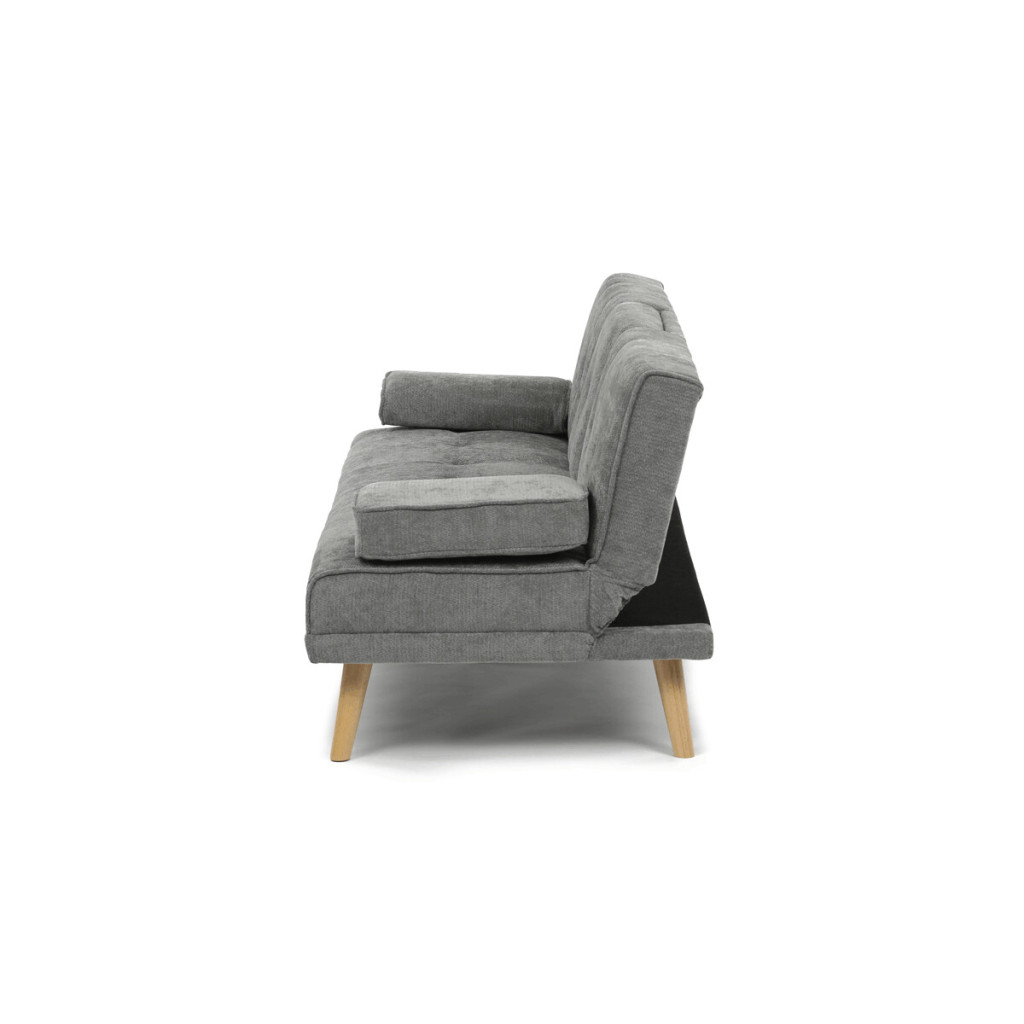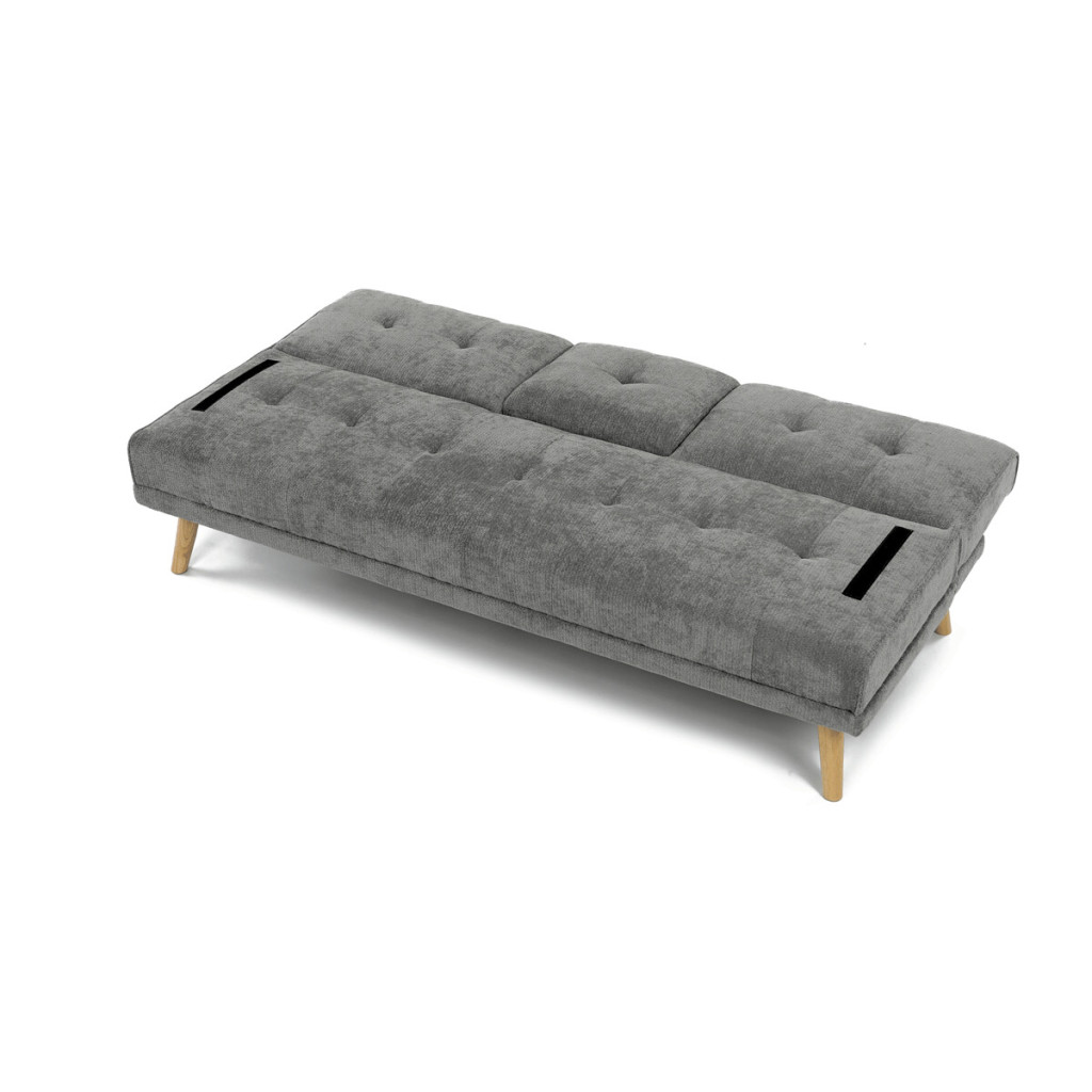 Canapea extensibilă confortabilă cu 3 locuri, tapițerie textilă gri și picioare din lemn natural – soluție elegantă pentru living. Modelul ASB-C3034, cu brațe laterale, oferă suport suplimentar și, extins, asigură o suprafață de dormit de 180x95 cm. Cadru solid din lemn masiv, capacitate de încărcare 300 kg. Livrare în 14 zile lucrătoare.