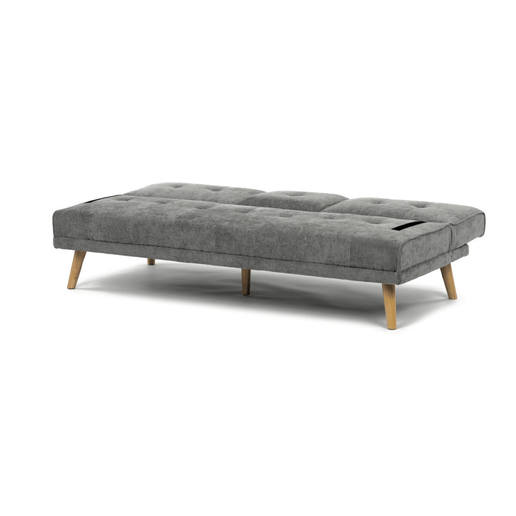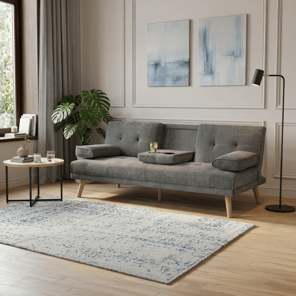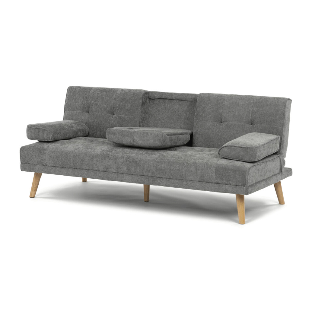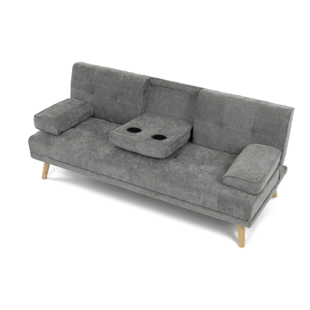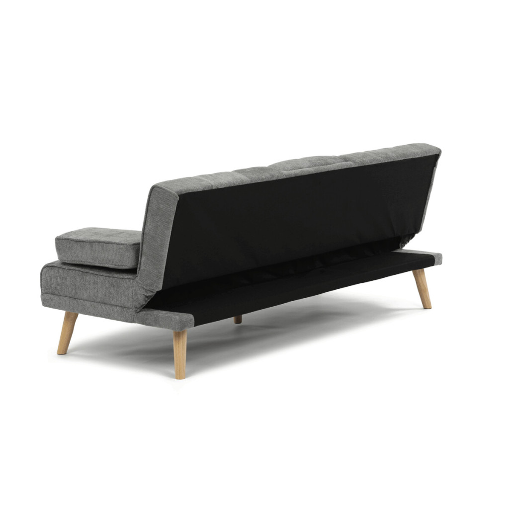 Canapea extensibilă confortabilă cu 3 locuri, tapițerie textilă gri și picioare din lemn natural – soluție elegantă pentru living. Modelul ASB-C3034, cu brațe laterale, oferă suport suplimentar și, extins, asigură o suprafață de dormit de 180x95 cm. Cadru solid din lemn masiv, capacitate de încărcare 300 kg. Livrare în 14 zile lucrătoare.