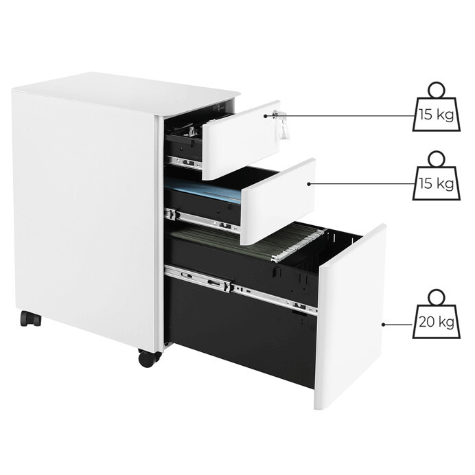 Container birou 30x46x59 cm, metal, alb, AUK-E1130 WT