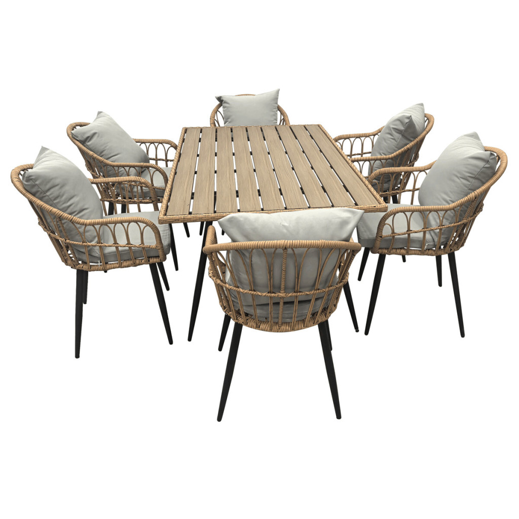 Scaun grădină, metal, poliratan, bej, AZ-F1406 NAT