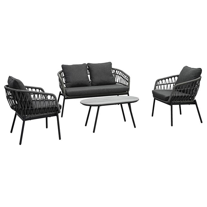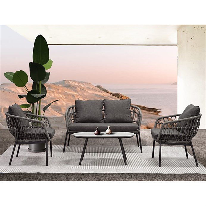 Set Mobilier de Grădină, Metal + Poliratan, Gri. AZ-L1880 GREY