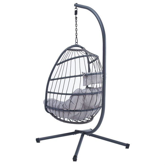 Scaun suspendat gri cu cadru metalic și împletitură polyrattan. AZ-V1269 GREY