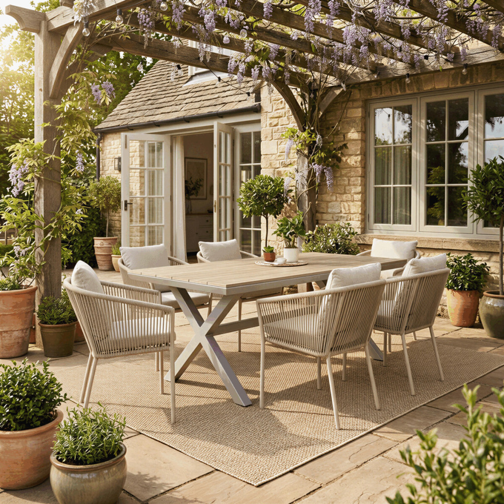Scaun grădină, aluminiu, textil, bej, AZC-C1179 CRM
