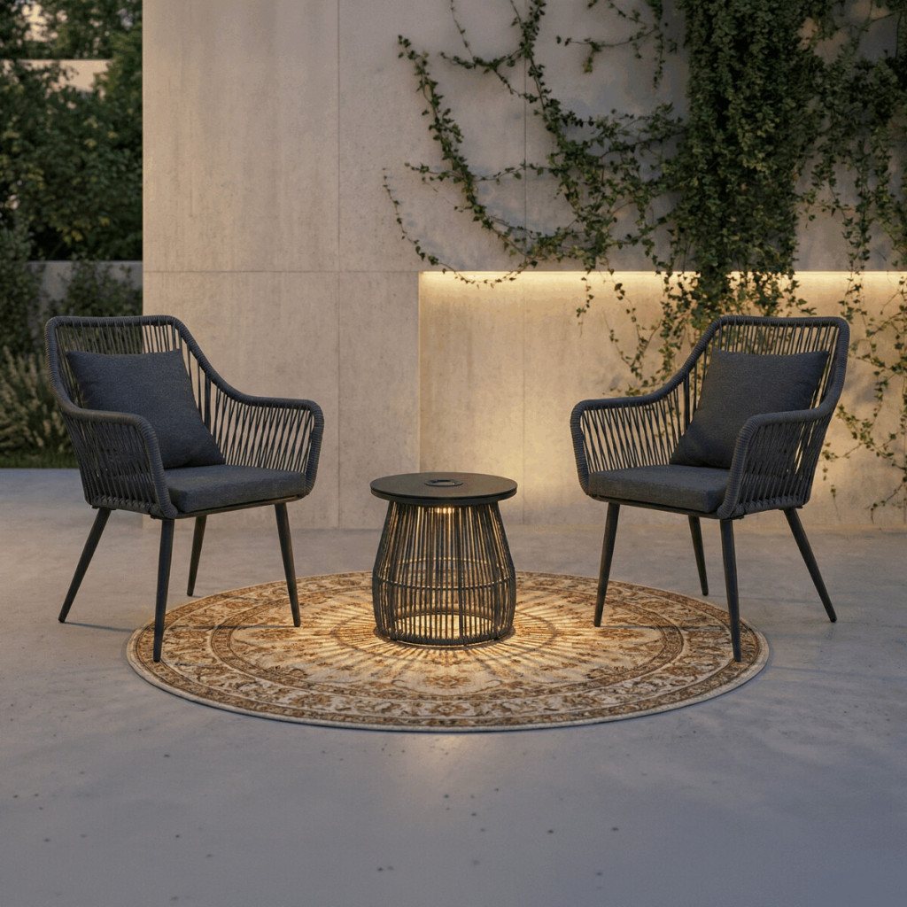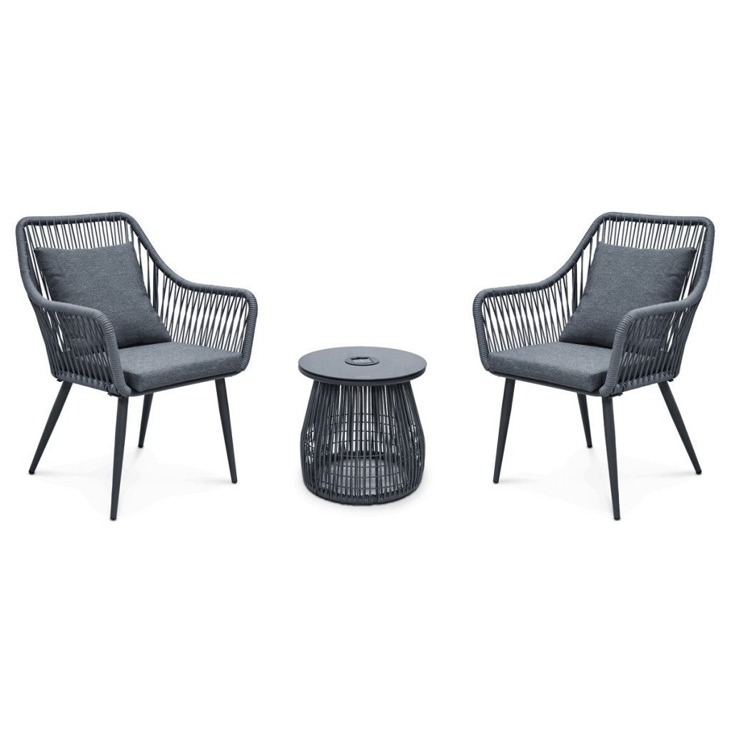 Set mobilier grădină 1+2, iluminare solară, metal, gri, AZS-L1314 GREY