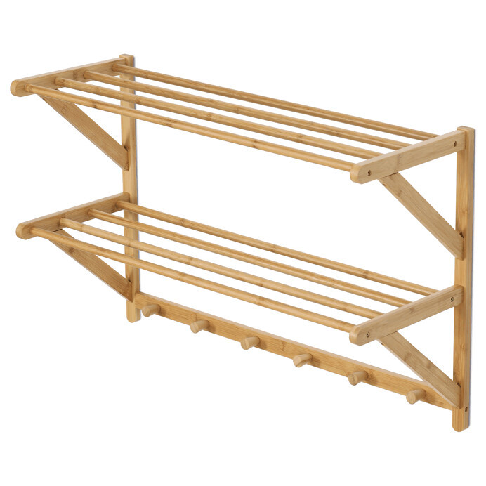 Cuier de perete cu două polițe pentru pălării, bambus, culoare natur, DR-B005 NAT