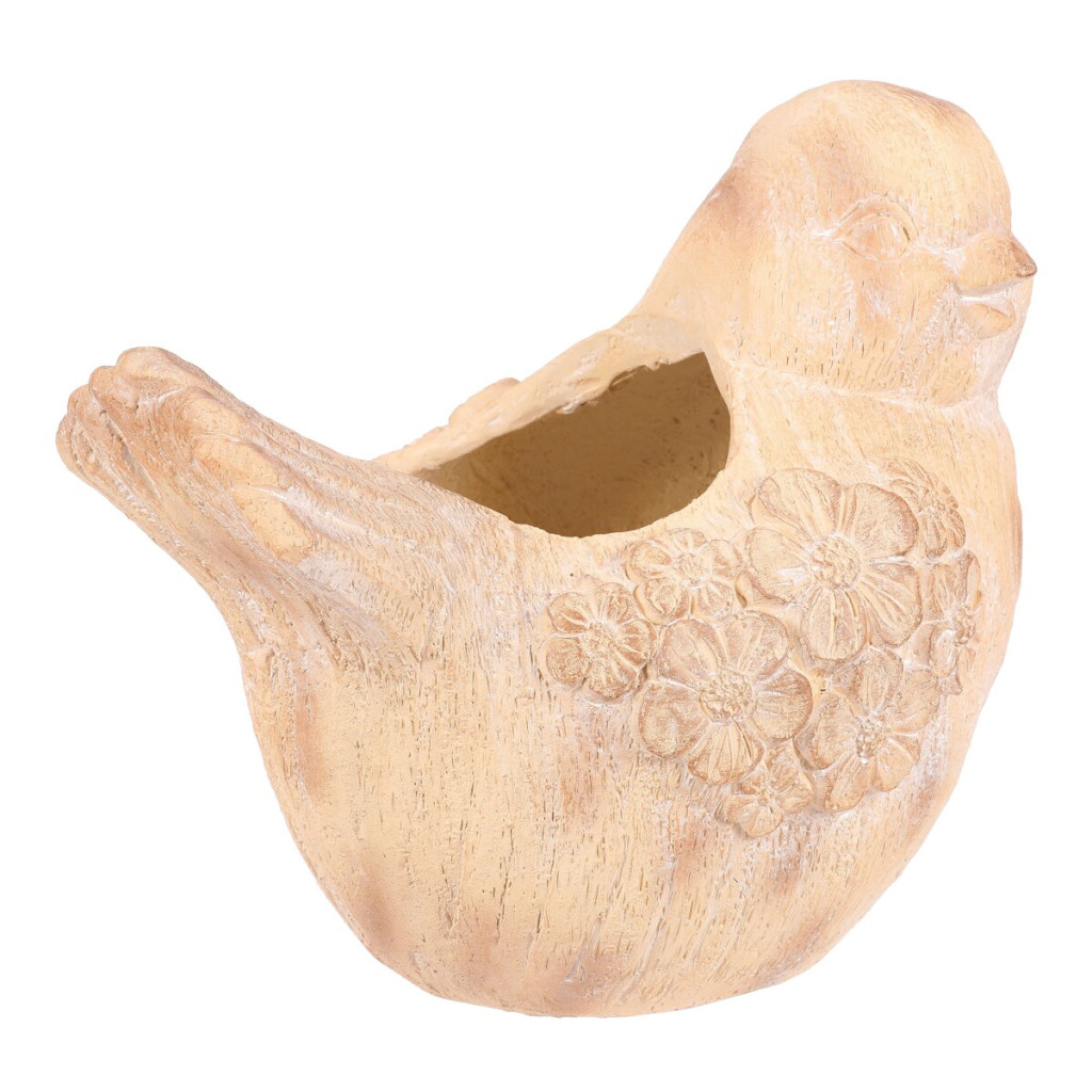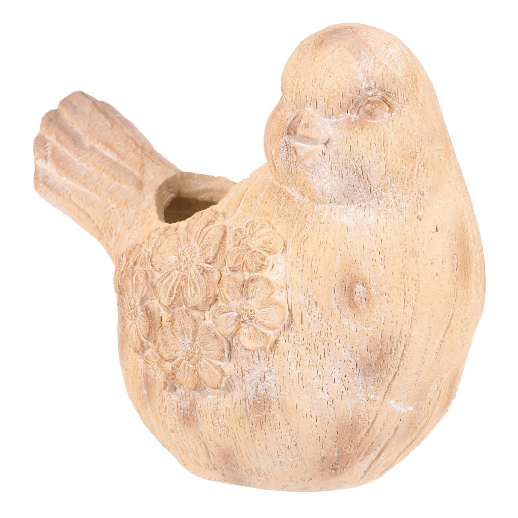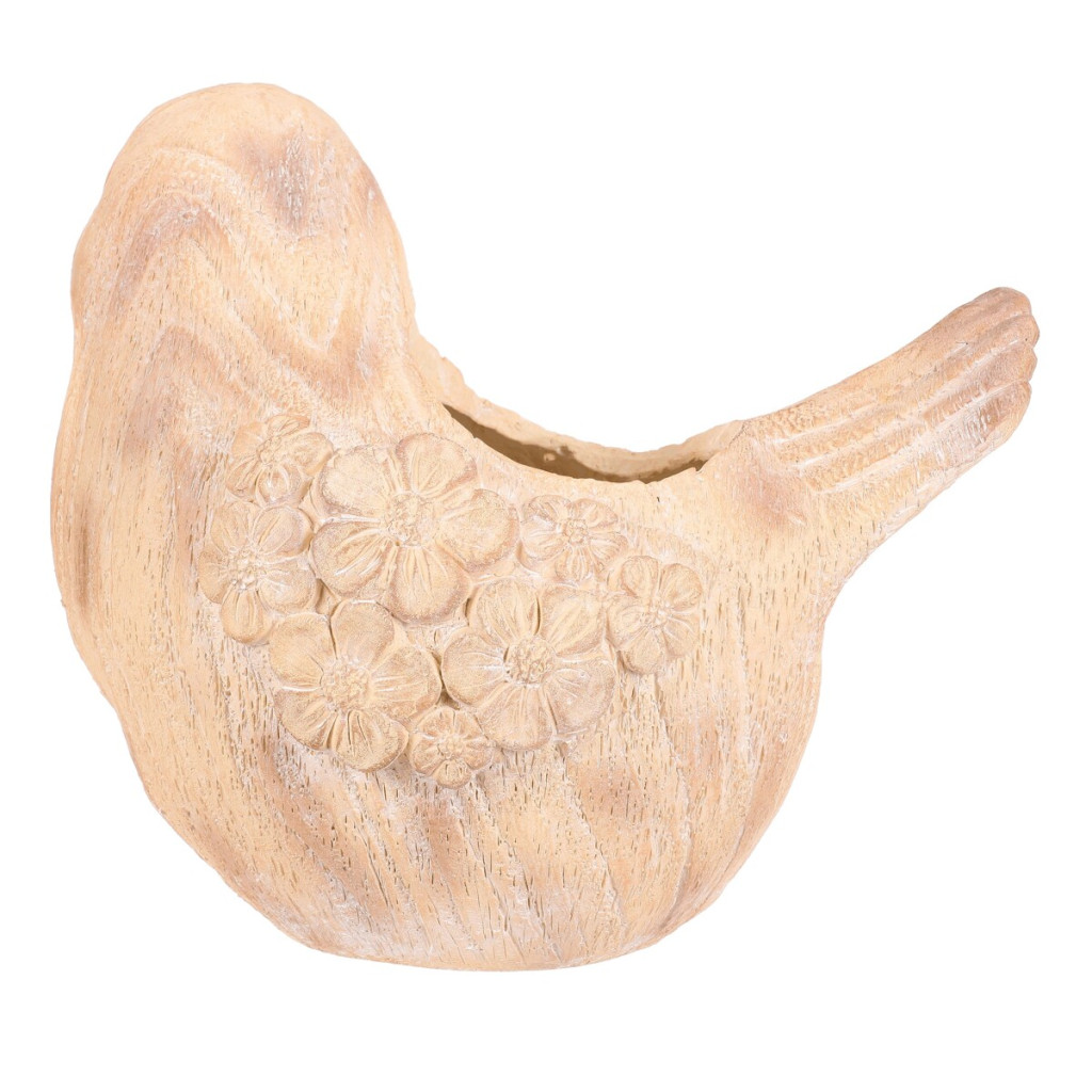 Ghiveci pasăre, magneziu, model floral, efect lemn