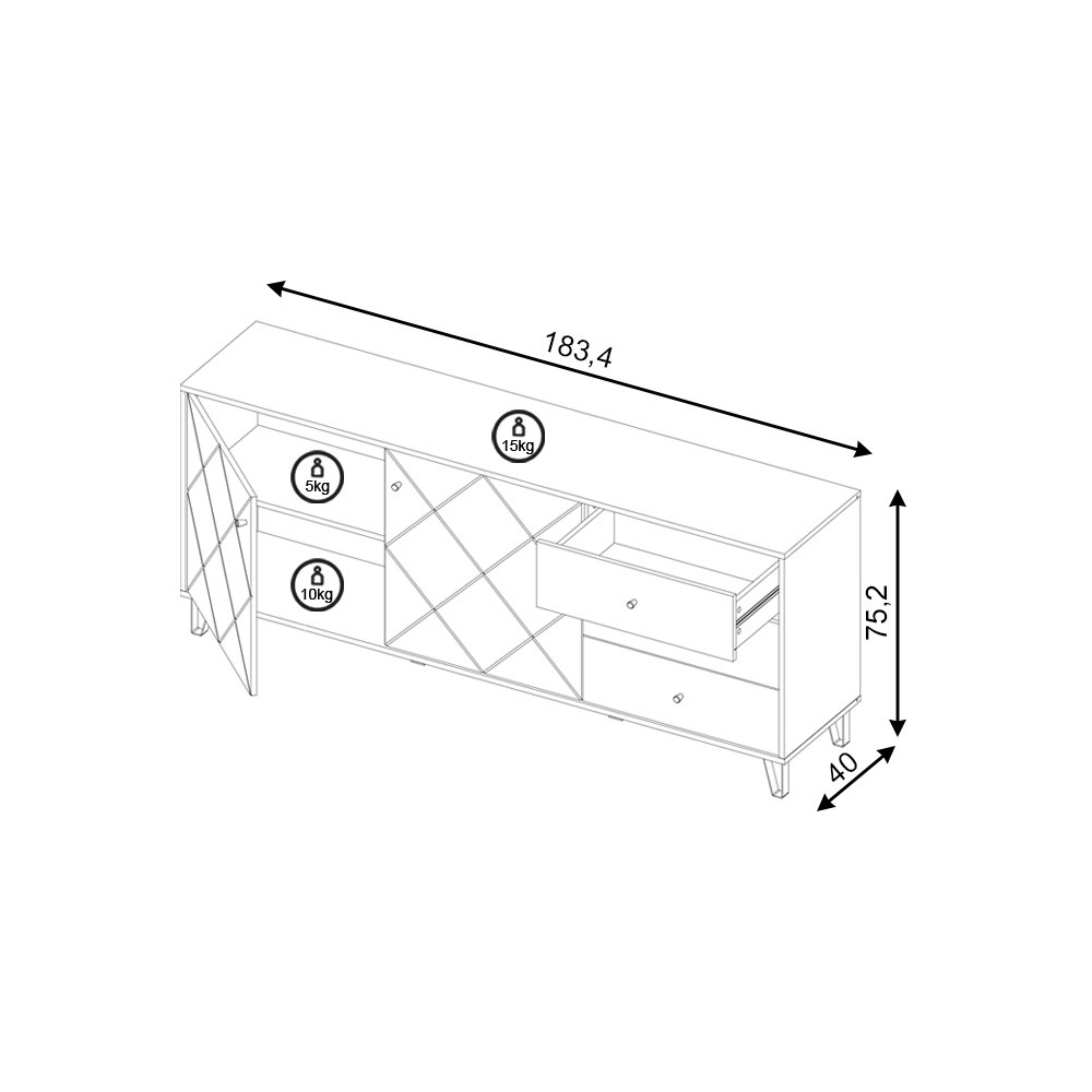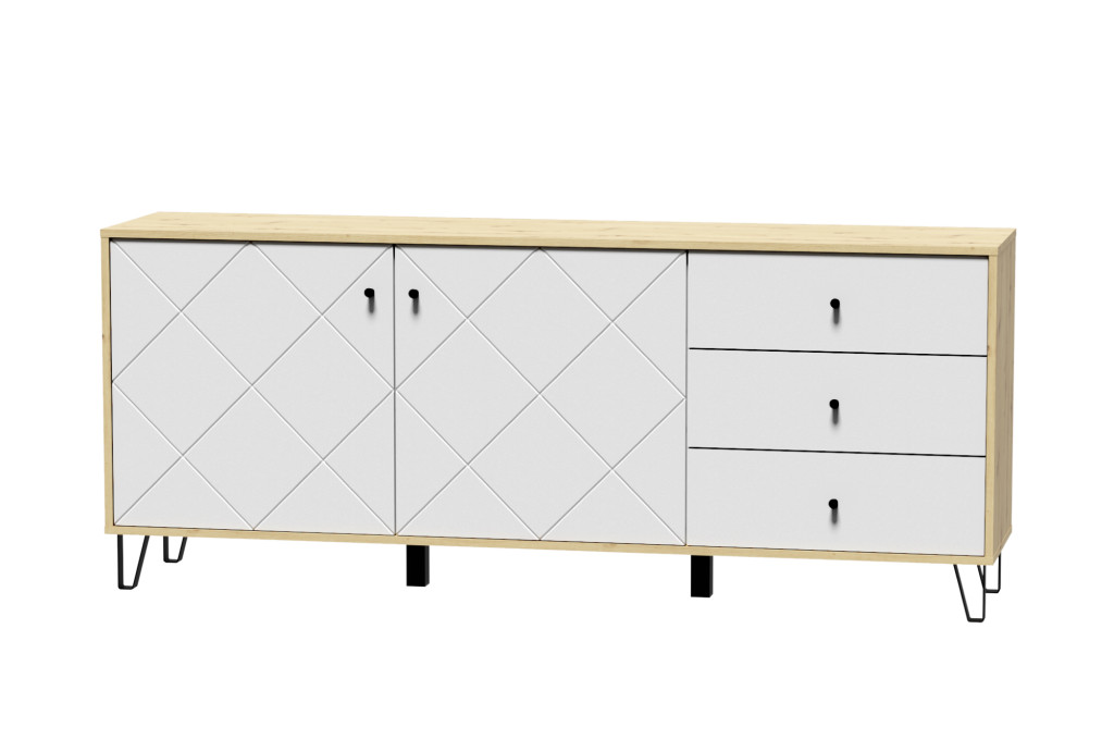 Comodă BILBAO BL06, 2 uși / 3 sertare, stejar artisan / alb mat