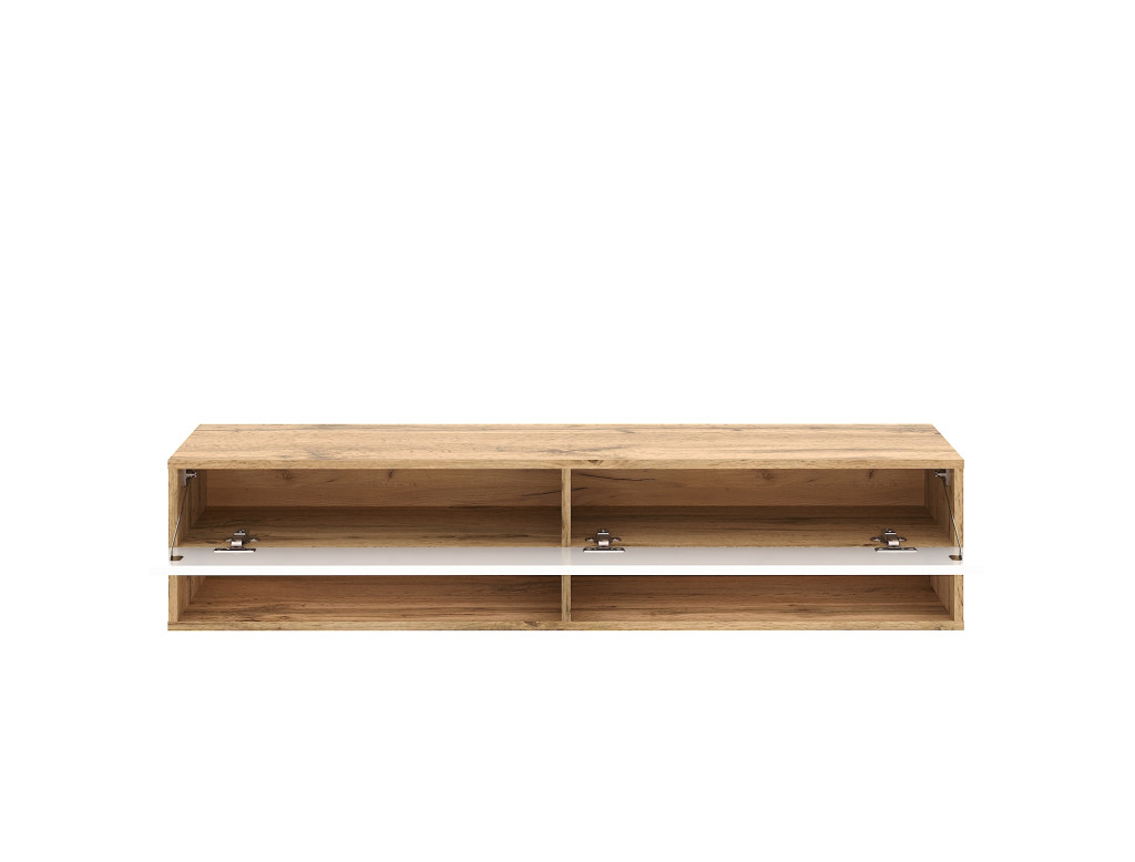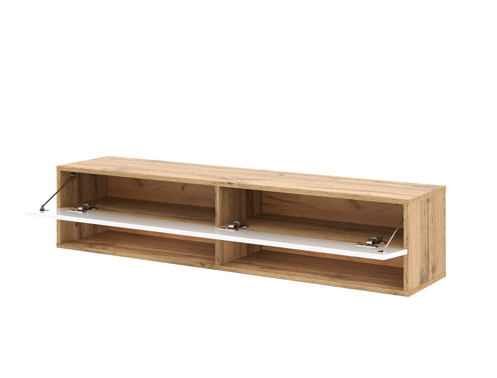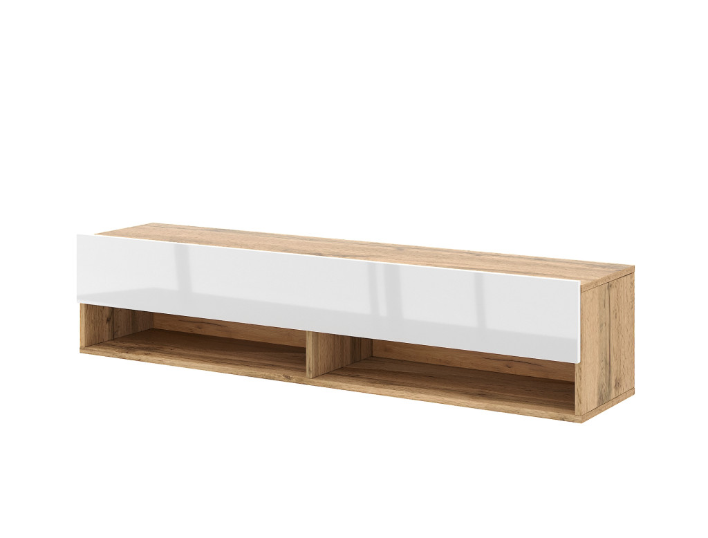 Comodă TV 140 cm, 1 ușă, culoare stejar wotan/alb lucios DERBY