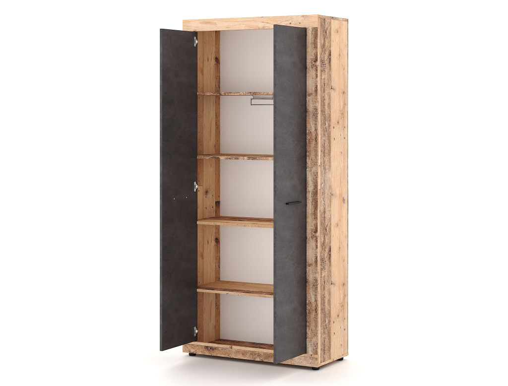 Dulap cu două uși, culoare lemn vechi / gri beton. LUNA2.