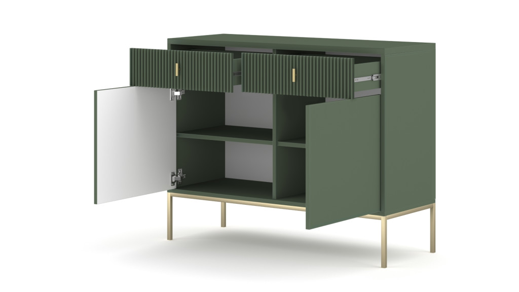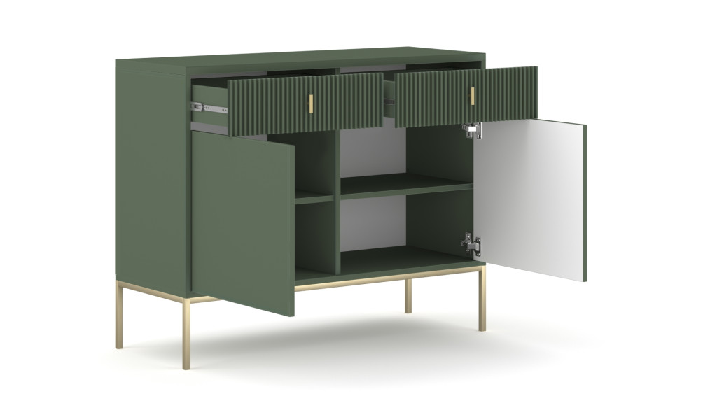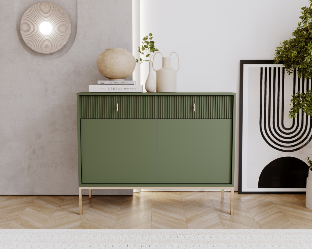 Comodă MAGGIORE verde cu 2 uși și 2 sertare