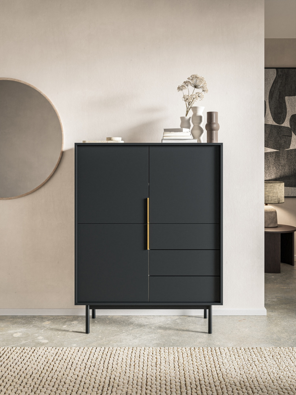 Comodă înaltă elegantă, de culoare neagră. VIVA VI04
